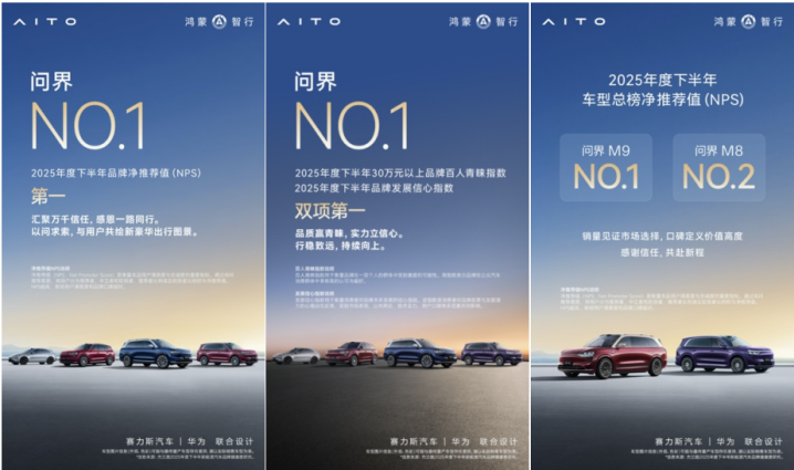 近日,杰兰路发布《2025年度下半年新能源汽车品牌健康度研究》报告。报告显示,问界荣获品牌NPS(净推荐值)第一、品牌发展信心指数第一、30万元以上品牌百人青睐指数第一;其中全景智慧旗舰SUV问界M9以89.2的分数位列NPS(净推荐值)车型总榜第一,这是问界M9继2024年全年、2025上半年后第四次摘冠,也成为新能源SUV车型中第一个、唯一一个连续四次获得NPS第一的车型。这一成绩不仅印证了用户对其全维实力的深度认可,更展现了问界M9在50万级豪华SUV市场的强大号召力。