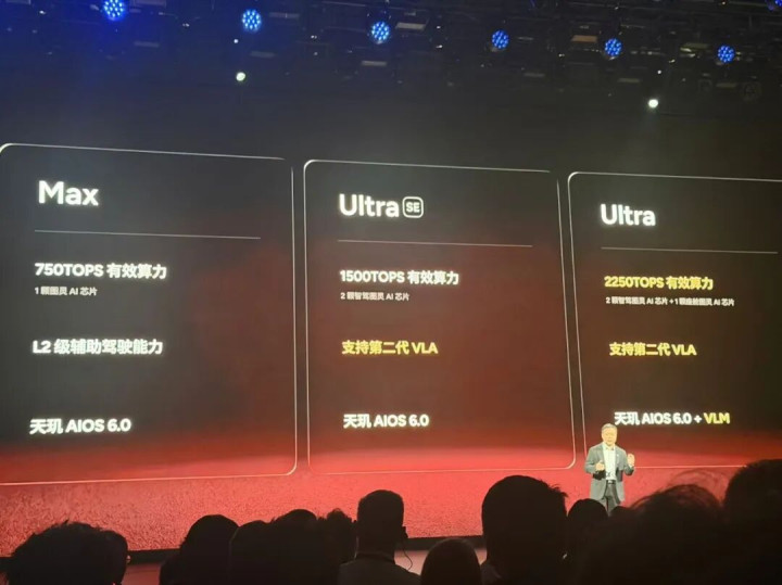 Ultra则为三颗图灵AI芯片,其中两颗给智驾、一颗给座舱,搭载第二代VLA和VLM大模型,价格在Max基础上增加2万元。